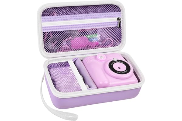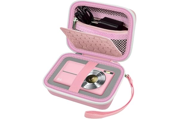 Portable mini camera case: Instant camera storage box is specifically designed for ESOXOFFORE instant print camera for boys and girls, camara instantanea holder also fits for Dylanto/ for ENERHAMP/ for Anchioo/ for YTETCN/ for Amzelas/ for WEEFUN/ for GKTZ/ for MEETRYE/ for USHINING/ for Mafiti/ for BESTOONE instant cameras that print photos. (Only carrying case, not include instant print camera)Boy and girl’s camera box with effortless organization: Tots digital camera organizer features detachable dividers, allowing you to separate cute camera for girls and printer paper effectively. Say goodbye to friction and keep instant camera in pristine condition. Portable camera case with half mesh pocket inside keeps refill print paper securely in place and no more paper roll mishaps. When opening insta camera container, paper rolls won’t immediately fall out and scatter on the groundPhoto camera bag with superior protection: Crafted with premium quality materials, instant film cameras carrying case offers the ultimate protection for your boy and girls camera instant print and accessories. Pink camera travel box is shock-proof and drop-proof, ensuring instant camera for boy and girl and equipment stays safe and secure. Let your tots explore their creativity without worrying about accidental spills, dust, or bumpsKid camera storage with mesh pocket: The cámara instantánea cover with a mesh pocket helps you keep print paper roll, color pen, lanyard, Type-C cables, photo paper, SD cards, user manuals and other small parts in a place. The zippered closure ensures everything stays in place, eliminating the frustration of searching for missing items. We understand the importance of having all the necessary accessories on handPortable instant photo cameras holder: Little camera travel case with detachable hand strap allows for easy carrying, so your child can take their camera with instant pictures and replacements on the go. Smooth zipper of digital tots camera carrying box ensures quick access, while the compact size fits perfectly into backpacks or suitcases. Designed for convenience, outer dimensions of tots instant camera container are: 7.28*4.33*2.75 inches