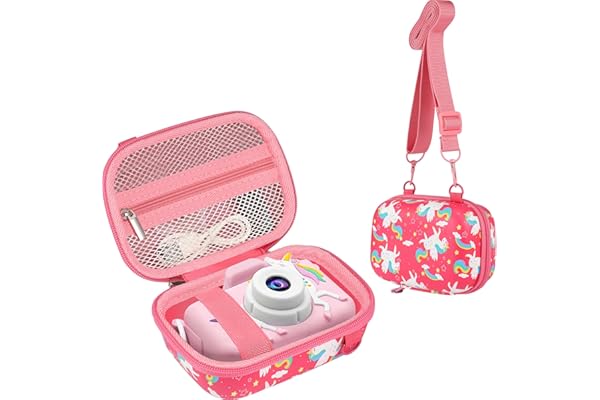 Preferred Material :This kids camera case suitable for many brands of children’s digital toy cameras, such as: Seckton/GKTZ/OZMI/HANGRUI/VATENIC/SUNCY/JLtech/DYY/OMZER/OMWay/Agoigo/Ourlefe/styleton/Lindol/ArtCWK/ASIUR/KeBuLe/Unicorn (case only,not including equipment and accessories)Cute Appearance :The pink unicorn’s appearance attracts children’s attention more, making it an ideal partner for children’s cameras. Cute patterns and Special cartoon pattern design is more suitable for giving an be ideal as Christmas and birthday gifts for kids.Surety :Equipped with an elastic strap, it is used to secure the camera and ensure that it does not shake in the camera bag. The camera case can be hung outside the bag during travel, ensuring the safety of the camera during transportation. External dimensions: 5.1 * 3.3 * 2.2 inches. Internal dimensions: 4.3 * 2.95 * 2.16 inches.Storage Accessories :The mesh pocket inside the kids camera case can accommodate additional USB cables, mini SD cards, and other small but essential children’s digital camera accessories.Excellent Quality :This camera case is made of high-quality EVA material, providing better protection for children’s cameras. The sturdy and smooth zipper is also easy for children to use.