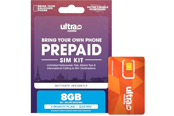 $24/mo. Ultra Mobile Prepaid Phone Plan with Unlimited Talk, Text, & 8GB of 5G • 4G LTE Data for 1 Month (3-in-1 SIM Card Kit is one of the best-selling products with 1917 reviews and a 3.8/5 star rating on Amazon.