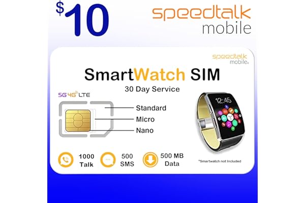 SpeedTalk Mobile Smart Watch SIM Card 5G 4G LTE GSM Smartwatches and Wearables | 1000 Minutes Talk 500MB Data | 3 in 1 Simcar