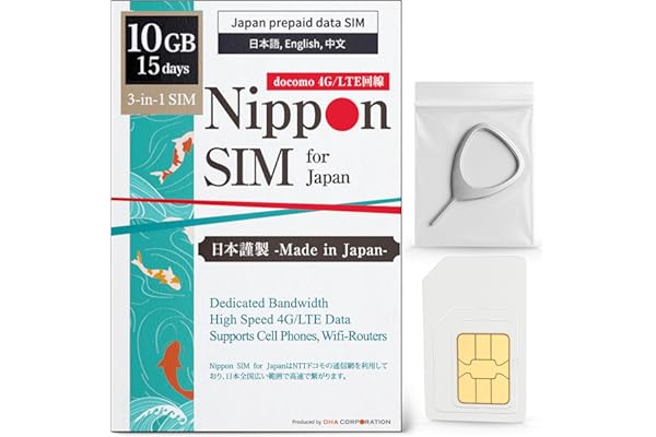 【Expiry Date & Easy Installation】Please start using the SIM before 2026/6/30. Starting after this day means you may not fully utilizing the duration of the period. [Android devices] Please set up APN information on your device. [iPhone/iPad] Simply insert the SIM card. Basically, it will be set up automatically. If it is not set up automatically, please follow the instructions to set up the APN.【10GB LTE data, 15days use with docomo network】10GB for normal usage, you can tethering with PC/notebooks for work!! 15days for short-term visitors, locals returning to Japan!! Utilizing Japan largest carrier docomo Network to provide broader and stable connections even in rural area. After all purchased 4G/LTE data are consumed, speed will be throttled under 128kbps till the 15th days.【Product Package】Package comes with a Docomo Full MVNO SIM card (tri-cut SIM card supporting Standard / Micro / nano size), 3 languages manual (English / Chinese / Japanese) , SIM PIN to eject SIM tray and a small plastic bag to keep your own local SIM.【Applicable products】Support SIM Free device including iPhone (except US version after iPhone 14 which supports only eSIM, please check eSIM B0DTK4P2DZ), iPad, Android smartphones, Android Tablets, LTE enabled PC, MiFi which supports below bands: 4G/LTE: Band 1 (2.1GHz) / Band 3 (1.8 GHz) / Band 19 (800MHz) / Band 21 (1.5MHz) / Band 28 (700MHz)/ Band 42 (3.5GHz); 3G/W-CDMA: Band 1 (2.1GHz)/Band 6/19 (800MHz). (Core bands: 1 / 3)【Made in Japan and Pease of mind Japan local supports】This product is produced by DHA Corporation, a Japan local MVNO carrier (telco registration no: A-30-16419) We design and produce this product, and we provide end to end supports (pre to post purchase), including issueing new replacement of SIM Card/eSIM from our Tokyo customer support center.【Japan Local service for faster, securer connections】Unlike other Japan ”roaming” products, you do not need to turn on data roaming, as your connections are limited within Japan without roaming to other countries, providing you faster access with higher security.