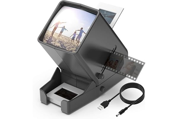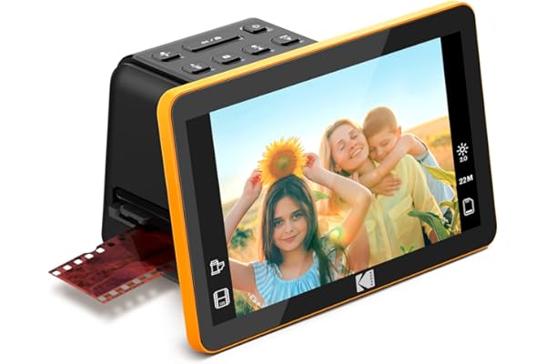First – Am I happy with it? YES. If you mainly want ACCEPTABLE SCANS of your memories, it’s QUICK and EASY. Perfectionists or serious photographers who sell photos should buy something more professional or use commercial scanning services; still, it’s good for quick scanning of many less important slides.Helpful articles: DPReview Jan 2021 “Reporting: Lab scan vs. Kodak Slide ‘n Scan” and Dec 2019 “Scanning vs photographing slides” (includes a video of Library of Congress archiving methods). I spent many hours reading articles and watching videos about digitizing.I gave it 4 stars rather than 5 because it lacks the superior quality of far more expensive scanners and it limits exposure compensation. But overall, it’s easy, speedy, and good quality.Scanning is a tradeoff between TIME, QUALITY, and PRICE; top quality demands a lot more money and time. Pro film photographers often grimace and groan when asked if they’ve digitized all their old negatives and slides! Best methods: a dedicated film scanner (Epson, Nikon, etc. at $400 to $1000+), a flatbed scanner (min 2000dpi) with a transparency media adapter or homemade “Backlighter,” a DSLR with a macro lens setup ($300+), extension tubes ($40+), or an old slide duplicator/reverser ($40 on e-bay, but requires a full-frame camera), and other creative setups found on the internet.I scanned over 6000 slides from the 1970s to 80s. My Kodak Ektachrome and Kodakchrome slides retained more original colors than my Fujichrome. Commercial scanning companies charge about $0.20 to 0.70 per slide and more depending on quantity (e.g. $140 for 200 slides, $1000 for 5000 slides); custom scans cost even more. So it cost me $240 / 6000 slides = $0.04 per slide. It’s more economical IF you have thousands of slides. An average roll (36 exposures) took me less than 10 minutes to scan (longer if I had many adjustments), so about 5 rolls per hour including saving photos to my hard drive. Compare that to one pro that used a high-end scanner who spent four 8-hour days to scan 1800 slides (about 1 minute per slide).I haven’t scanned negatives…for most photo memories, I simply place nine 4×6 prints together and use a DSLR to photograph them at max megapixel; I save only irreplaceable negatives.TIPS:Years ago, I bought a Wolverine F2D 20-Super, but it sat in a box until recently. Its 1-inch monitor is useless, so I hooked it up to my TV – after a month its connection mysteriously failed. Besides, adjusting exposures and colors was time consuming – make a small change, press OK, and then it displayed the changes. So I bought the Kodak – you can adjust exposures and colors in REAL TIME – you see your changes immediately before saving (A MAJOR PLUS, no matter what scanner you buy – expect MANY exposure adjustments).I chose the 7-inch over the 5-inch screen to facilitate editing in a pinch and to use later as a digital picture frame (approximating a 4 x 6 photo), but I always planned to connect it to a large monitor. Reviewers of the 5-inch scanner had some software issues, so I hoped the 7-inch model was upgraded.MONITOR: The 7-inch screen is acceptable for many photos, but definitely not for fine detail adjustments. Use a large computer monitor with HDMI input (for a VGA monitor, use a female HDMI to male VGA adapter). To connect the scanner, you need a male mini-HDMI to female standard-HDMI adapter; plug the male end into the scanner, and then use a standard male to male HDMI cable to connect to your monitor. (You can eliminate the adapter by using a special male mini-HDMI to male standard-HDMI cable.) I mainly share photos with friends on my computer monitor or large screen TV (which essentially replaced my old slide projector and white screen), but calibrating colors on a computer monitor is easier than most TVs. If you’re going to display photos on a large screen, then use a large screen to edit them!COMPUTER: Connecting the scanner’s USB cable to my desktop computer as a power source also allowed easy transfer of images to my hard drive. The computer (or laptop) has its own separate monitor, so I could use my photo editor immediately after image transfer (so I use 2 monitors; 1 connected to the computer, and 1 connected only to the scanner) as well as listen to music while scanning.PRIORITIZE SLIDES TO BE TIME EFFICIENT:1) Slides to scan and then discard.2) Slides to scan and then send to relatives and friends who may want to professionally scan them and make enlargements.3) Slides to professionally scan (especially where exposure and color adjustments are crucial) – slides that are irreplaceable and/or make money; I still keep those original slides. Or if you prefer, use one of the other homemade setups and do it yourself – the DSLR method seems best.In the late 70s, I ordered “inter-negatives” of slides I sold as huge enlargements (low concert lighting required slide film processed at higher ASAs, not possible with negative film back then). A slide loupe magnifier and LED light table or panel ($15 at a home building store) sometime help when you’re not exactly sure.ALWAYS CLEAN your scanner and slides. Small specks are obvious, especially in the sky (or maybe specks were birds or dust on your camera lens). Constantly check the scanner screen for dust and use its wiper brush. Clean your slides with a wide photo brush stick (easier to use and hold in the same hand while inserting a slide) and use a separate blower for lots of dust. When you still see specks on the screen, simply remove the slide holder and clean your slide and scanner screen if necessary (or flick the slide on the left side to eject the slide on the right side so you can clean it). BE PATIENT – cleaning is easier than touching up later!EASIER SCANNING: Save a junk “pusher” slide to insert on the left side of the slide holder to help line up your first slide, and also to push your last slide into the scanner. And use a nice comfortable chai