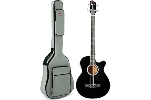 ACOUSTIC-ELECTRIC BASS: Equipped with a 4-band EQ-7545R preamp to produce high-quality audio for hours of musical practice and play4-BAND PREAMP: Experiment and customize your sound with built-in volume control! A 4-band equalizer lets you adjust bass, middle, treble, and presence with easeATTRACTIVE DESIGN: Crafted with an attractive sound hole inlay, chrome die-cast tuners, and a glossy finish for easy upkeepCUTAWAY SHAPE: A classic design, the cutaway shape combines a rich, supple tone with easy access to the higher frets for a more diverse soundPADDED CASE: A convenient carrying case comes with backpack straps, a durable padded material lining, three storage pockets, and a non-slip rubber pad for quick access to your instrument; BASS GUITAR DIMENSIONS: 15.5″(L) x 4.5″(W) x 43.7″(H)