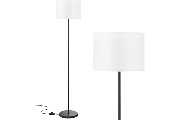 White Modern Floor Lamp: This floor light fits in any room from industrial to modern or traditional décor. Its simple and elegant design can make it easy to place in any room of the house.Fits with E26 Base Bulbs: We recommend you use a 2700K warm white light to fit this standing light which can create a cozy atmosphere. Note: Bulb not included.Perfect Size for Corner Reading and Decoration: Whether you read books in a recliner, or work at a desk, the standing lamp fits easily beside your furniture. It is easy to reposition and without taking much visual space.Great with Modern Home Decor: White shade with stable black base. The white tall lamp helps to brightened up the room and the lamp has simple design that matches perfectly with furniture. This room light has a pedal switch to turn it on and off. Convenient and great overall design!Easy to Install: Assembly of this sofa lamp for bedroom couldn’t be easier, you can twist the poles together, srew them into the base and do a quick lamp shade assembly. Only takes 10 minutes from start to finish, and no need any tools to complete.