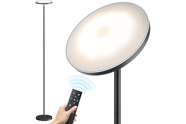 Super Brightness and Dimmable Floor Lamp : SUNMORY’s new LED floor lamp for living room supports stepless dimming brightness (5%-100%) and color temperature (3000K-6000K). And this is a super bright floor lamp with 32W/3000LM, providing sufficient lighting for your living room or bedroom. Whether you’re reading, writing, standing lamp provide soft, bright light that’s easier on the eyes. The 69″ LED lights for bedroom has a slim profile that blends perfectly into any style of room decor.Remote Control & Multi-Function : The floor lamp with remote control has the ability to easily manage the settings of the lamp from anywhere within 50 feet. With the remote control, you can easily switch between 4 lighting modes(reading, feeding, working and night light modes) to meet your various scene needs. This standing lamp is perfect as a corner lamp, lamps for living room, lamp for bedroom, or office lamp. It also features a memory function to remember your last lighting settings.Rotatable Lamp Head and Heavy Base : The living room lamps can be rotated 350° horizontally and 180° longitudinally to guide the light as needed. You can easily rotate the bracket of the tall lamp to the desired angle to illuminate every corner of the room. Moreover, the SUNMORY lights for bedroom has a thick base, which is strong and stable enough, so you don’t have to worry about tilting it too much, making it very safe and reliable.Long Lifespan & Energy Saving : Modern floor lamps use high-brightness, low-heat LED advanced technology. Under the correct current and voltage, these LED lamp beads have a service life of up to 30,000 hours, and their brightness is comparable to 200W incandescent lamps. But it consumes less energy and is more efficient, saving more than 80% of lighting electricity bills. 80+ high color rendering index brings you vivid and natural colors, better visual enjoyment and a comfortable atmosphere.Easy to Assemble : Please refer to the user manual included in our package, which explains the exact installation of the black floor lamp with a video. Simple enough to ensure you only need about 5-10 minutes to successfully complete the installation. If you have any questions or are unlikely to be dissatisfied with the lamps for living room after receiving it, please feel free to contact us. We will deal with it as soon as possible to achieve a mutually satisfactory result.