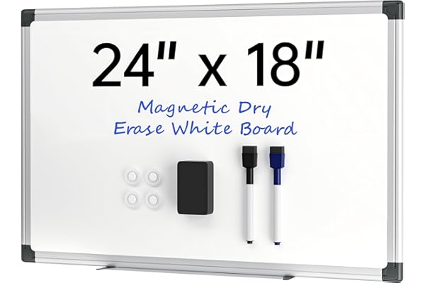 VUSIGN 24″ x 18″ Magnetic Whiteboard for Wall, Dry Erase Board with Silver Frame, Hanging White Board for Office, Home, Schoo